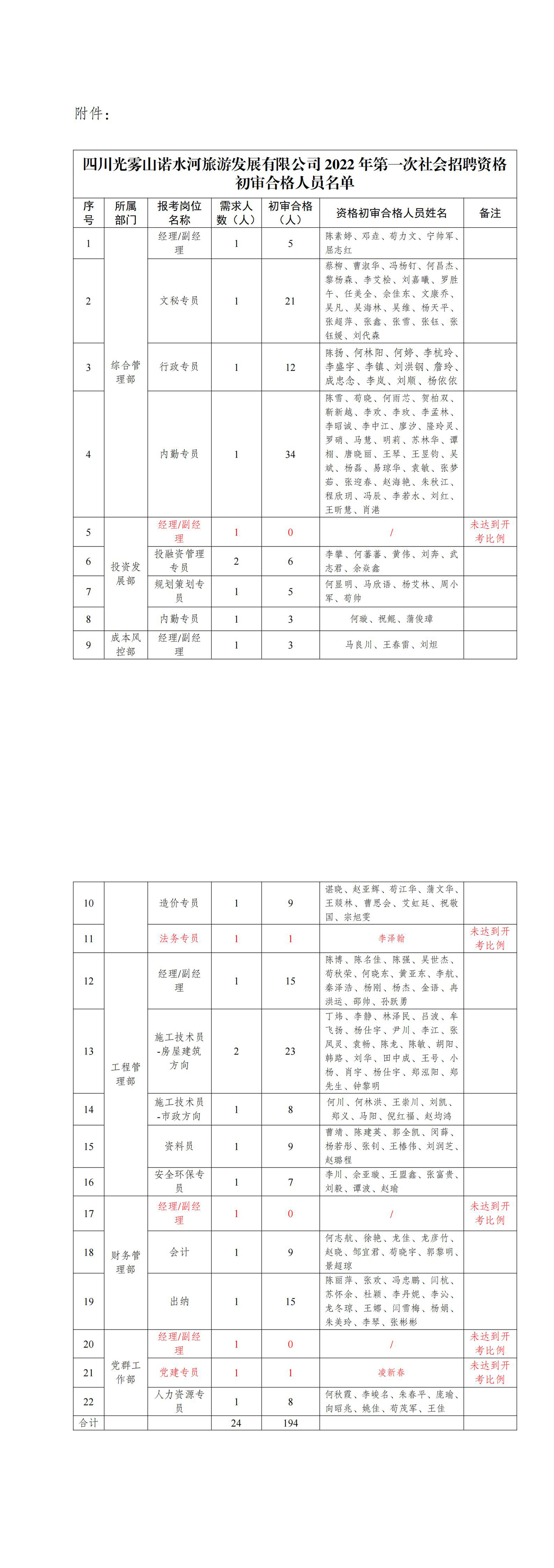 附件(jiàn):宣漢縣旅遊局2022年(nián)€$₹第一(yī)次社會(huì)招聘資格初審β 合格人(rén)員(yuán)名單