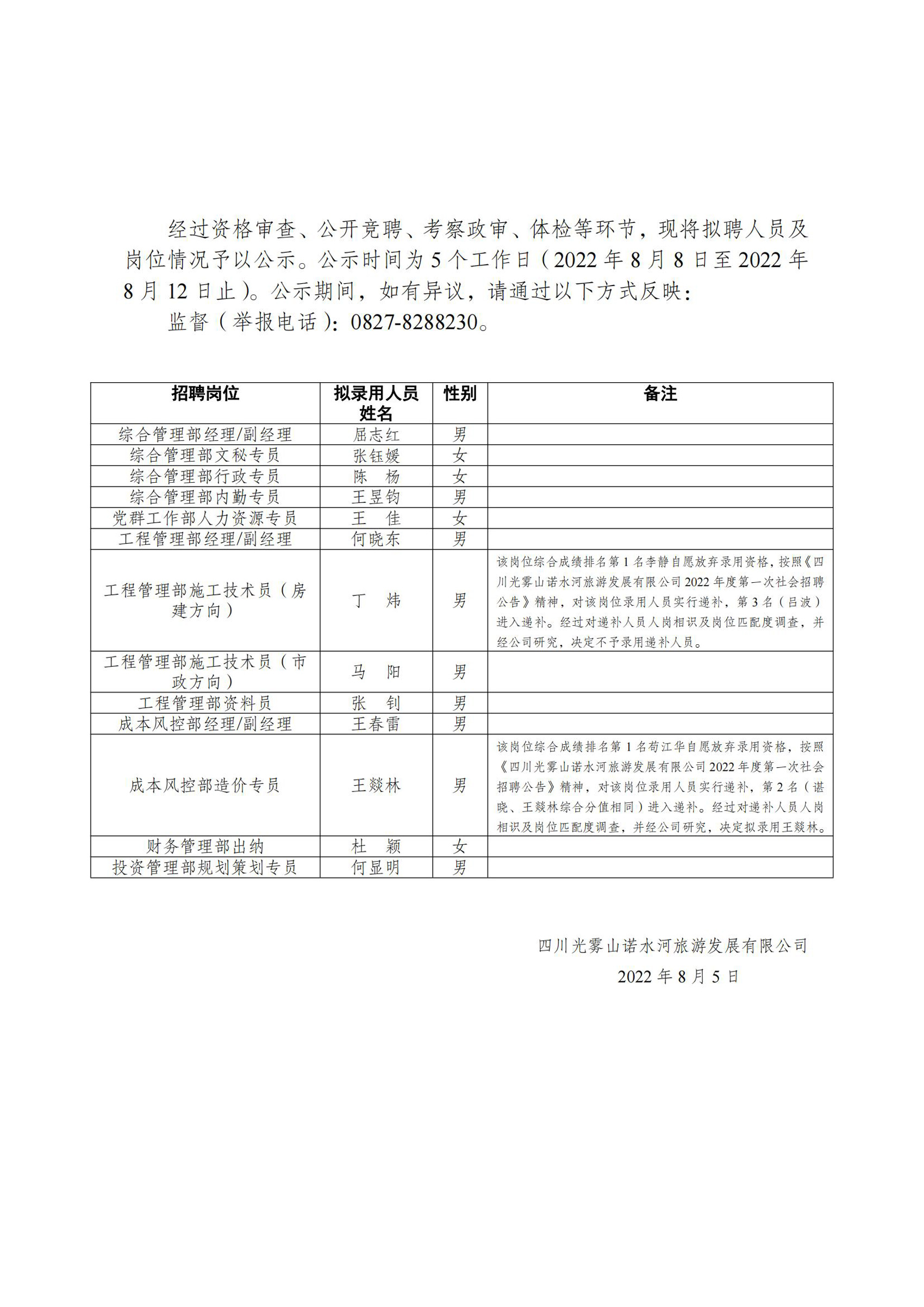 宣漢縣旅遊局 2022年(nián)度第一(yī)次社會(huì)招聘拟ε®錄用(yòng)人(rén)員(yuán)公示